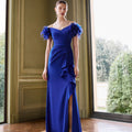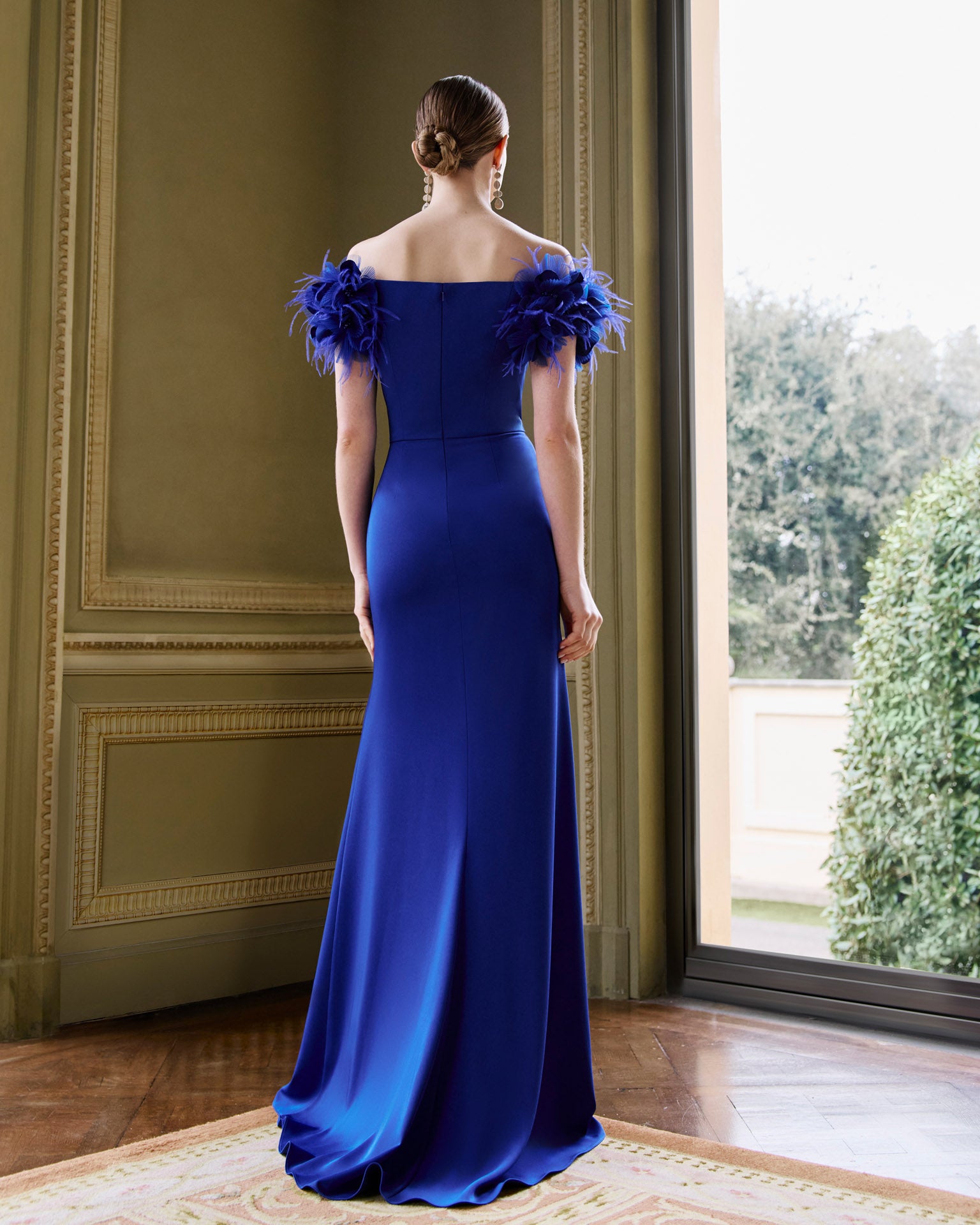 Un abito da cerimonia lungo in blu che incanta per il suo design sofisticato. Pensato per donne che vogliono distinguersi con classe e femminilità, rappresenta una delle proposte più raffinate della nostra collezione di abiti da cerimonia a Roma.