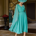 Perfetto per matrimoni, serate eleganti, cerimonie in villa o ricevimenti diurni, questo capo rappresenta l’espressione più raffinata dell’abbigliamento elegante donna. Il colore turchese, vibrante ma sofisticato, lo rende particolarmente adatto alla stagione primaverile ed estiva, da abbinare a un cappello a tesa larga e orecchini chandelier per un ensemble da vera protagonista.