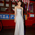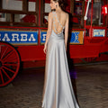 Luminoso, raffinato e di impatto: questo abito argento da cerimonia è pensato per la donna che desidera brillare con eleganza in ogni occasione speciale. Il taglio scivolato valorizza la silhouette con una morbidezza fluida, mentre lo scollo dritto con sottili spalline conferisce al décolleté un tocco essenziale e delicato.