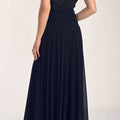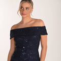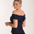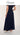 Il top nero presenta uno scollo omerale che lascia le spalle delicatamente scoperte, in pizzo ricamato con micro-paillettes che donano una luminosità sofisticata. La gonna nera ampia e fluida, in chiffon leggero, cade morbida dalla vita alta creando un movimento armonioso ad ogni passo. La vestibilità è confortevole ma slanciata: il corpino segue le linee del busto mentre la gonna svasata equilibra le proporzioni, rendendo l’insieme femminile e impeccabile.