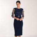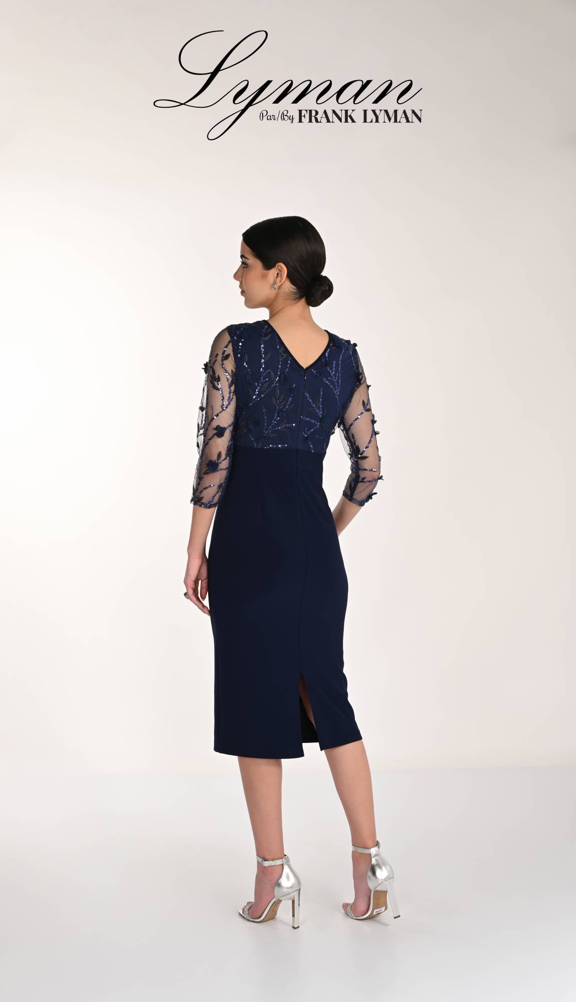 Il corpino è un capolavoro di ricami: tulle leggero impreziosito da paillettes e micro applicazioni floreali, con maniche 3/4 trasparenti che velano le braccia con eleganza. La cintura in vita, chiusa da una fibbia gioiello, sottolinea armoniosamente il punto vita. La gonna in crêpe elasticizzato scivola morbida sul corpo e lo spacco posteriore assicura libertà di movimento. Fodera morbida e cuciture sartoriali garantiscono una vestibilità confortevole per tutta la durata dell’evento.