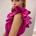 Il colore buganvillea, vibrante e sofisticato, esalta l’incarnato e conferisce energia al look, rendendolo perfetto per matrimoni serali, eventi di gala, feste di lusso o ricevimenti formali. Da abbinare a una clutch coordinata e a gioielli luminosi, per un outfit completo che non passa inosservato.