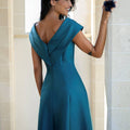 Un’eleganza essenziale che lascia il segno: questo abito scivolato verde nasce per chi desidera esclusività e raffinatezza in ogni dettaglio. Realizzato in raso duchesse luminoso, avvolge la silhouette con una caduta fluida e leggera. Lo scollo a V, costruito con pannelli sovrapposti e spalle leggermente strutturate, incornicia il décolleté con equilibrio, mentre il profilo a V sul retro aggiunge sensualità misurata. La vita è definita da tagli sartoriali che slanciano la figura e garantiscono una vestibilità confortevole dall’aperitivo al dopocena.