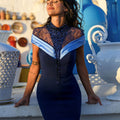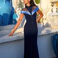 Questo abito a sirena in blu nasce per chi cerca eleganza scenografica e dettagli d’alta sartoria. Realizzato in cady leggermente stretch, scolpisce la silhouette con una linea pulita e uno spacco discreto che slancia la figura. Il corpetto è impreziosito da uno scollo omerale che accarezza le spalle e da uno scollo all’americana ricamato con micro-paillettes tono su tono; il gioco di drappeggi e il pizzo trasparente creano un raffinato effetto gioiello, mentre il retro in pizzo valorizza la schiena con estrema femminilità.