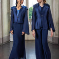 Il colore blu intenso conferisce sobrietà ed eleganza, rendendo questo completo una scelta perfetta per chi cerca uno stile ricercato ma senza eccessi.
