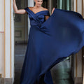 Un'eleganza che conquista al primo sguardo: questo abito lungo da cerimonia donna, realizzato in un intenso colore indaco, è la scelta ideale per chi desidera distinguersi con grazia e raffinatezza. Lo scollo omerale, con drappeggio incrociato sul décolleté, sottolinea la femminilità con equilibrio e charme, lasciando le spalle delicatamente scoperte.