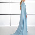 Un’eleganza scenografica e raffinata definisce questo abito da cerimonia donna, perfetto per chi desidera lasciare un’impressione indimenticabile. Il design monospalla, impreziosito da un inserto gioiello e da un ampio drappeggio a mantello, esalta la silhouette con grazia e movimento, creando un effetto etereo e regale.