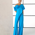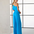 Questa tuta da cerimonia donna colore ciano unisce sartorialità e design moderno in un unico look d’impatto. La linea fluida del pantalone palazzo valorizza la figura, mentre il taglio monospalla asimmetrico dona un tocco di sensualità sofisticata.